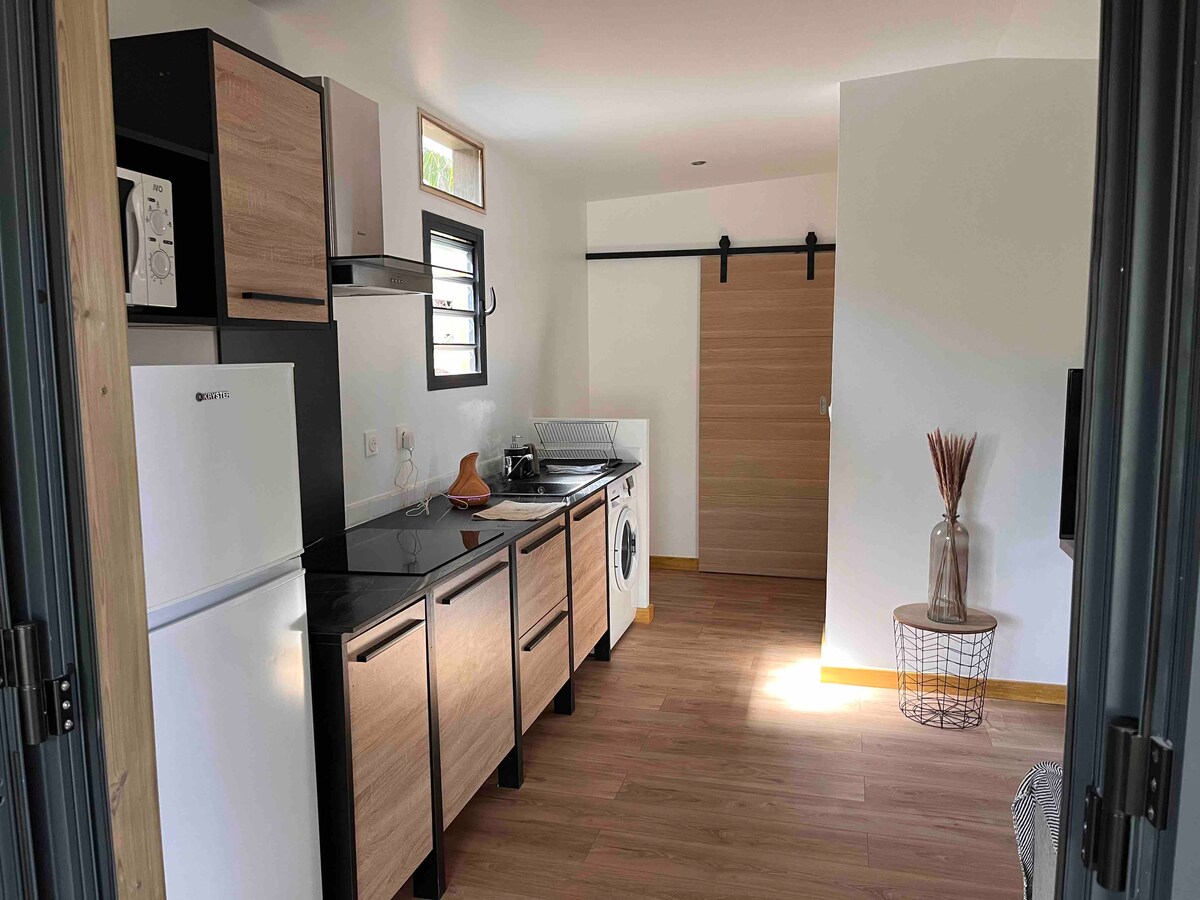 Dou-lhe as boas-vindas a este refúgio acolhedor em Saint-Leu, ideal para uma estadia tranquila, mas ainda assim perto de serviços e da lagoa. Este alojamento independente, adjacente à nossa residência principal, foi totalmente mobilado para proporcionar conforto e serenidade. Desfrutará de um espaço moderno e luminoso, com uma bela abertura para um deck de madeira e um jardim agradável.