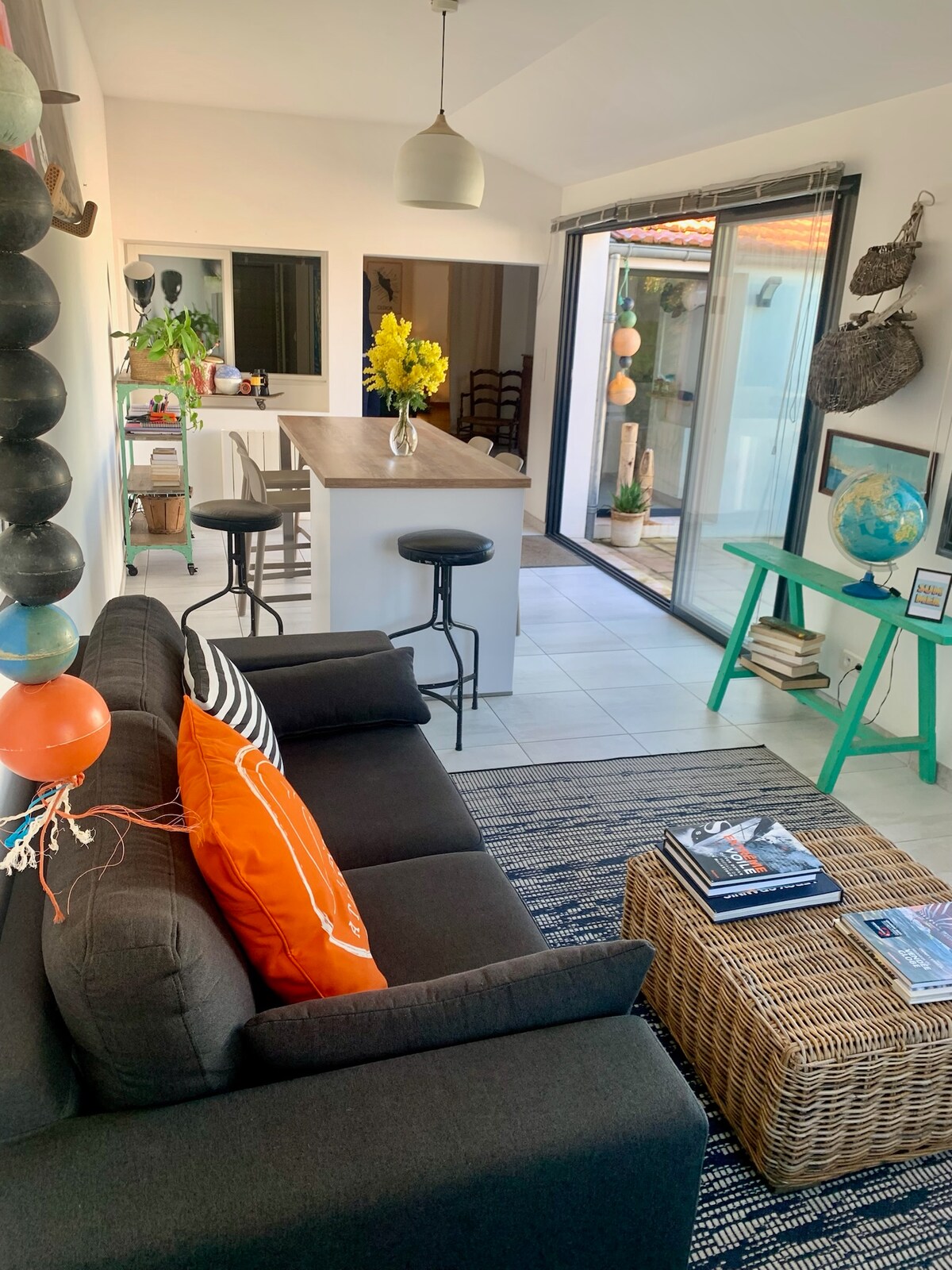"Le bout au vent" é uma casa de família totalmente reformada, com 90 m² em um terreno fechado de 1000 m², classificada como mobilada para turismo 4 estrelas. Idealmente localizada com acesso direto à duna e, em seguida, à praia de Matha para nadar, pescar e ver o pôr do sol. Esqueça o seu carro, a ciclovia está localizada em frente ao portal e permite que você faça suas compras a pé ou de bicicleta e descubra a vila de Cotinière a 1 km. O prazer de viver a pé ou de bicicleta...