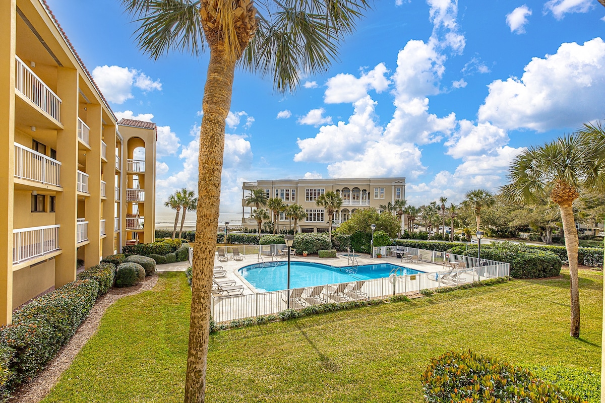 Bem-vindo ao seu luxuoso refúgio costeiro! Nosso condomínio recentemente reformado está localizado na comunidade fechada exclusiva do Beach Club em SSI, oferecendo aos hóspedes acesso a praias *privativas*, piscina à beira-mar e muito mais. Nosso apartamento está totalmente equipado com tudo o que você precisa para uma estadia confortável. A unidade 315 está situada no 3º andar, dando a este apartamento uma bela vista para a praia, pátio e piscina. Estamos a uma curta caminhada de restaurantes, lojas e a um rápido passeio de bicicleta para muito mais!