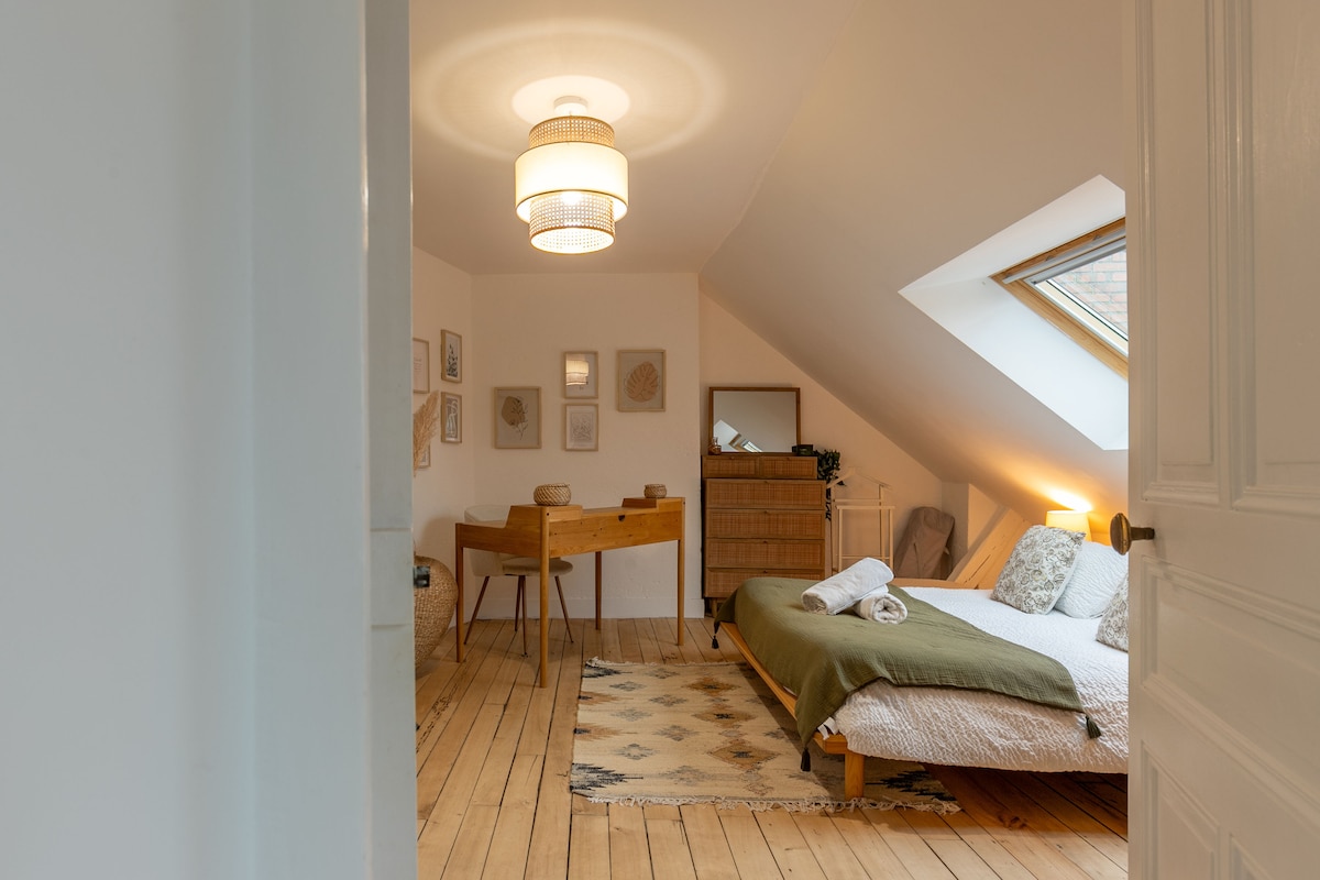 Apartamento totalmente reformado no 2º andar de uma casa de 1904. A dois passos do Loire de bicicleta, perto do bairro de Saint-Jean e dos restaurantes da rua Foulerie (10 minutos a pé pelas margens do Loire). Estacionamento fácil e gratuito. Cozinha equipada nova. Banheiro novo com banheira grande e box de chuveiro. Quarto climatizado com cama de 160 cm. Sala de estar com sofá-cama bultex de 140 cm. Garagem compartilhada para bicicletas e motocicletas. Roupa de cama fornecida. Máquina de lavar roupa compartilhada. Berço disponível.
