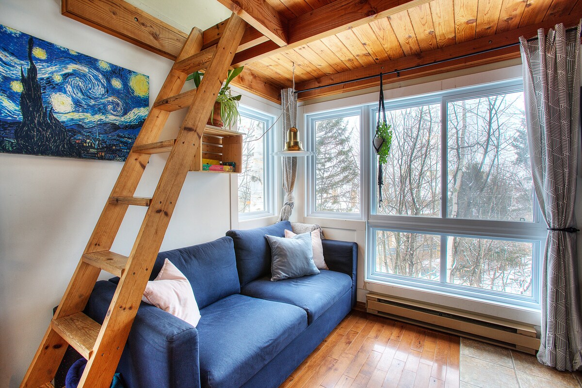 A 40 minutos de Montreal, pequena cabana rústica de madeira, no parque de North River, caiaque, ciclovia, esqui cross-country. Mezanino e colchão duplo, na sala de estar cama de casal ... kitchenette, chuveiro, PISCINA AQUECIDA (de maio a outubro) e gazebo. TV grande (Netflix incluída), acesso à Internet de alta velocidade. Ideal para um casal. Perto de todos os serviços, a 7 minutos de St-Sauveur-des-Monts, 50 restaurantes, esqui alpino, trilhos para caminhadas, parque aquático, cinema, etc. pergunte!