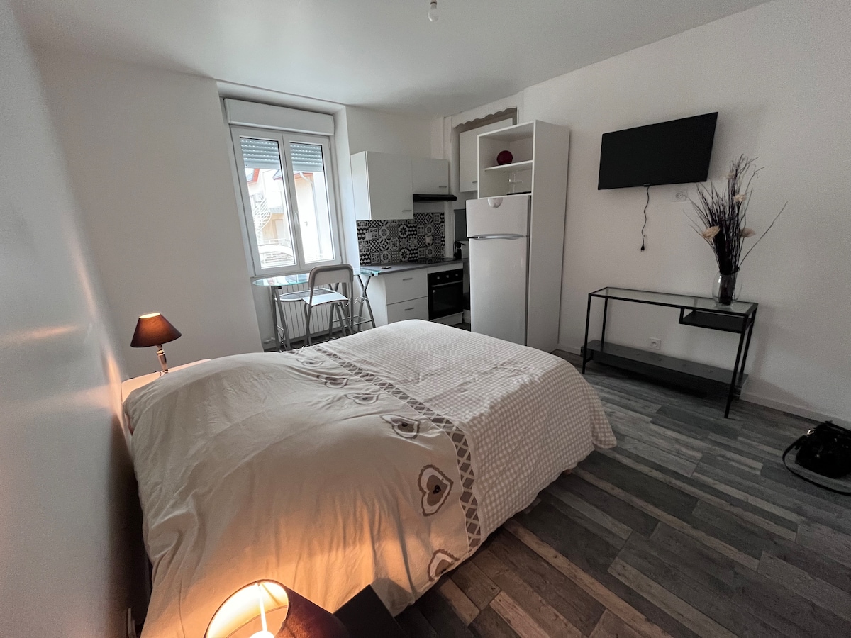 Estúdio charmoso em casa no coração de Savoie. +/- 30 m2. Cozinha totalmente equipada com fogão elétrico, forno, micro-ondas, cafeteira e chaleira. Novo e confortável. Chuveiro com pia; banheiro separado. Sofá-cama de 2 lugares de grande conforto (a casa dos sofás-cama (é uma cama de verdade)). Uma vaga de estacionamento. Roupa de cama, toalhas e panos de prato fornecidos. Possibilidade de opção de limpeza por 20 €. O horário de chegada depende do meu horário de trabalho, podemos discutir isso.