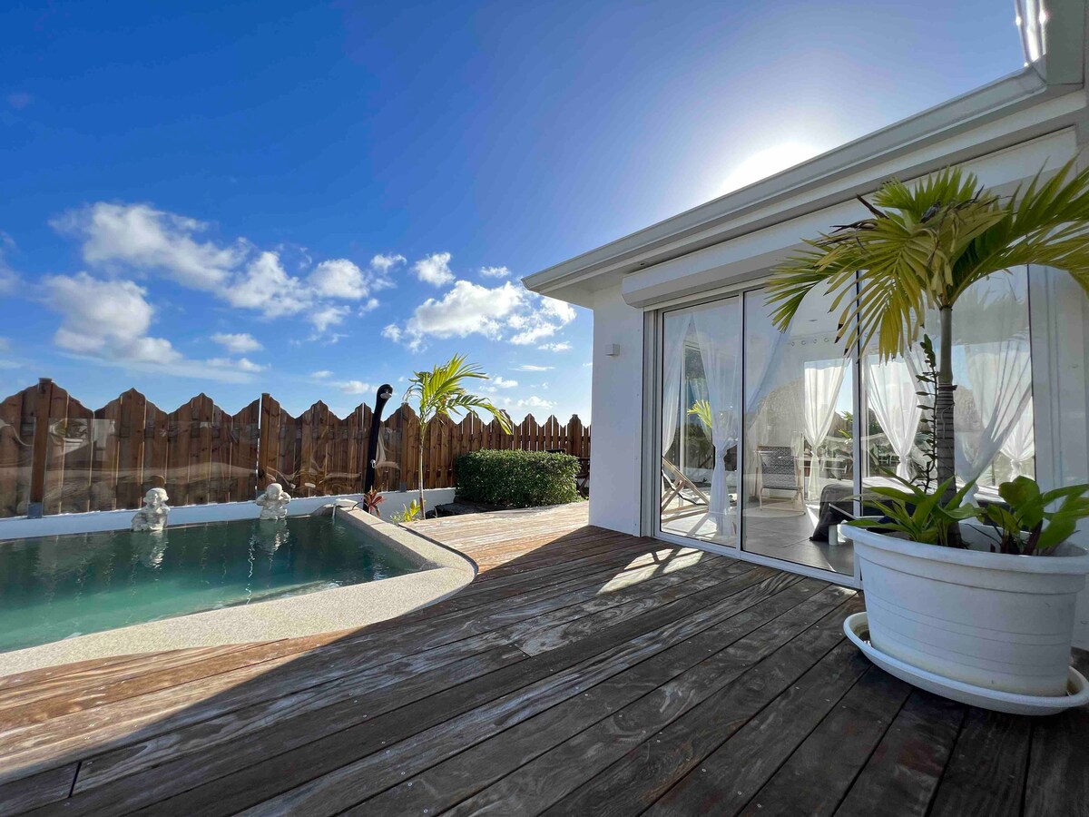 Bela moradia, localizada nas alturas de Sainte Luce, e perto da praia Inclui 2 quartos com ar condicionado (camas de casal) + vestiários + 2 casas de banho, piscina privada (protegida por alarme e portão) Vistas panorâmicas de 180 graus do Mar das Caraíbas e do jardim. Situado no coração da natureza, desfrutará do canto dos pássaros e do jardim. Não negligenciado. A 5 minutos da praia e de comodidades (Carrefour Express, farmácia, restaurante). Capacidade: 4 pessoas + 1 bebé