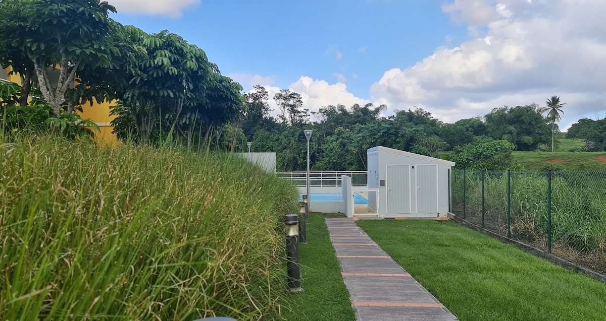 O seu apartamento fica numa zona rural de Guadalupe. Pode visitar o passeio pela casa todas as manhãs e descobrir as frutas que a natureza oferece. Visite as florestas tropicais perto de si. O rio mais próximo fica a 5 minutos de carro, a praia a 15 minutos. Os centros comerciais ficam a 15 minutos da casa. A mercearia mais próxima fica a 2 minutos a pé de distância. Corra todas as manhãs no estádio aberto logo atrás da casa e aproveite a aurora