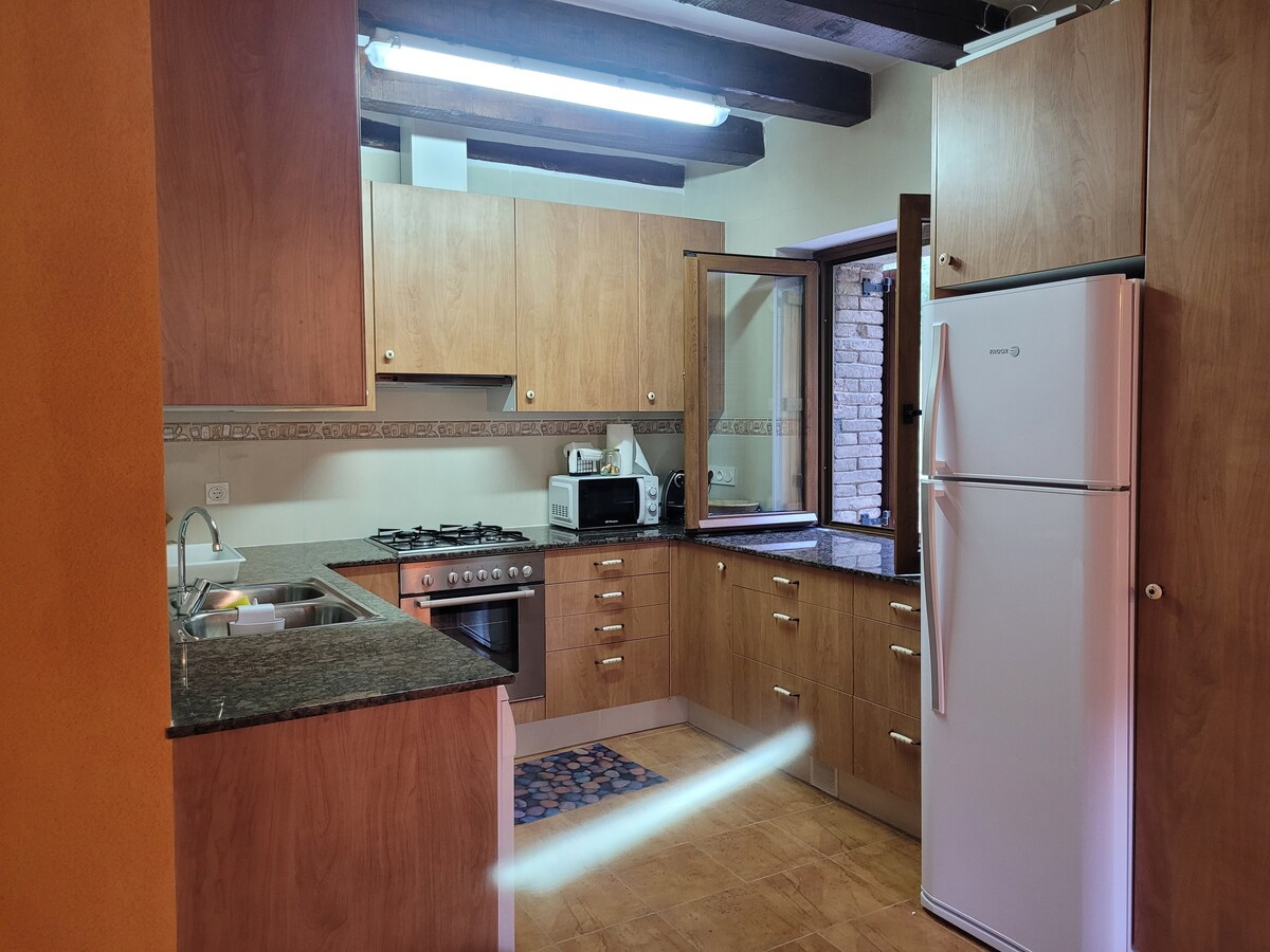 Apartamento con grandes balconeras, espacioso y de gran altura. Situado en la planta principal de una casa señorial de estructura gótica, con sus orígenes en el s. XIV. Conserva un arco de piedra de medio punto y los techos originales con bigas de madera. Con aire romántico con su cama dosel. Disfruta de las veladas en invierno al lado de la chimenea. Un espacio con carácter propio, en perfecta harmonía entre arquitectura medieval, diseño y confort. Totalmente equipado con cocina y baño