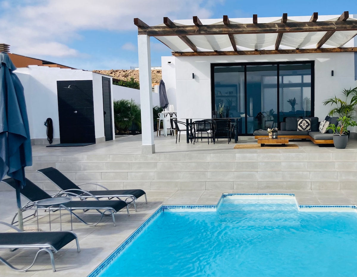 Relax in this quiet and elegant accommodation. Villa Blue Horizon with sea views in Caleta de Fuste (330 days of sunshine, sandy beaches), a terrace overlooking the beautiful sunrise over the sea. 10 min from the airport Villa Blue Horizon is suitable for children from 10 years old, It is not possible to book with younger children. We can accommodate up to four people and invite you to relax with lounge area and sun loungers.