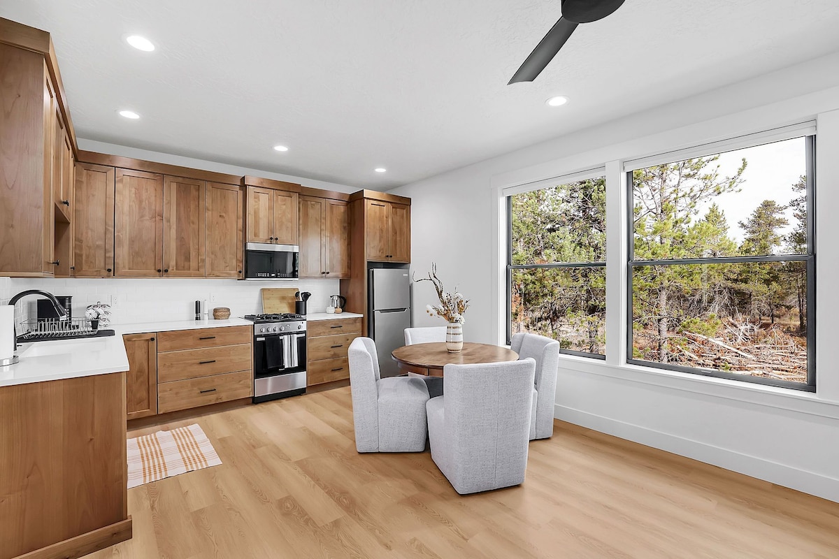 This newly built detached garage apartment offers a bright, open living space with plenty of natural light. Enjoy a fully equipped kitchen, a comfortable living area, a large deck overlooking the Beaverhead Mountains, and a peaceful bedroom. The bedroom is designed for restful sleep, featuring blackout shades for a dark, cozy atmosphere and a plush memory foam mattress with soft, supportive pillows. We live in our house next to the guesthouse and love our property, and we know you will too!