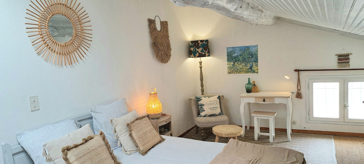 O edifício, uma autêntica fazenda provençal, foi construído em uma enorme propriedade de 1,6 hectares entre oliveiras e pomares. Seu chalé independente está localizado em uma ala oeste privativa. A ala leste é ocupada pelos proprietários, pois a casa da fazenda é concebida para garantir a cada um seu conforto e intimidade. Você tem uma entrada separada com portão e um estacionamento para até 4 carros, jardim privativo com spa e sua própria piscina aquecida. Você também tem acesso na propriedade a muitas comodidades para aproveitar sua estadia