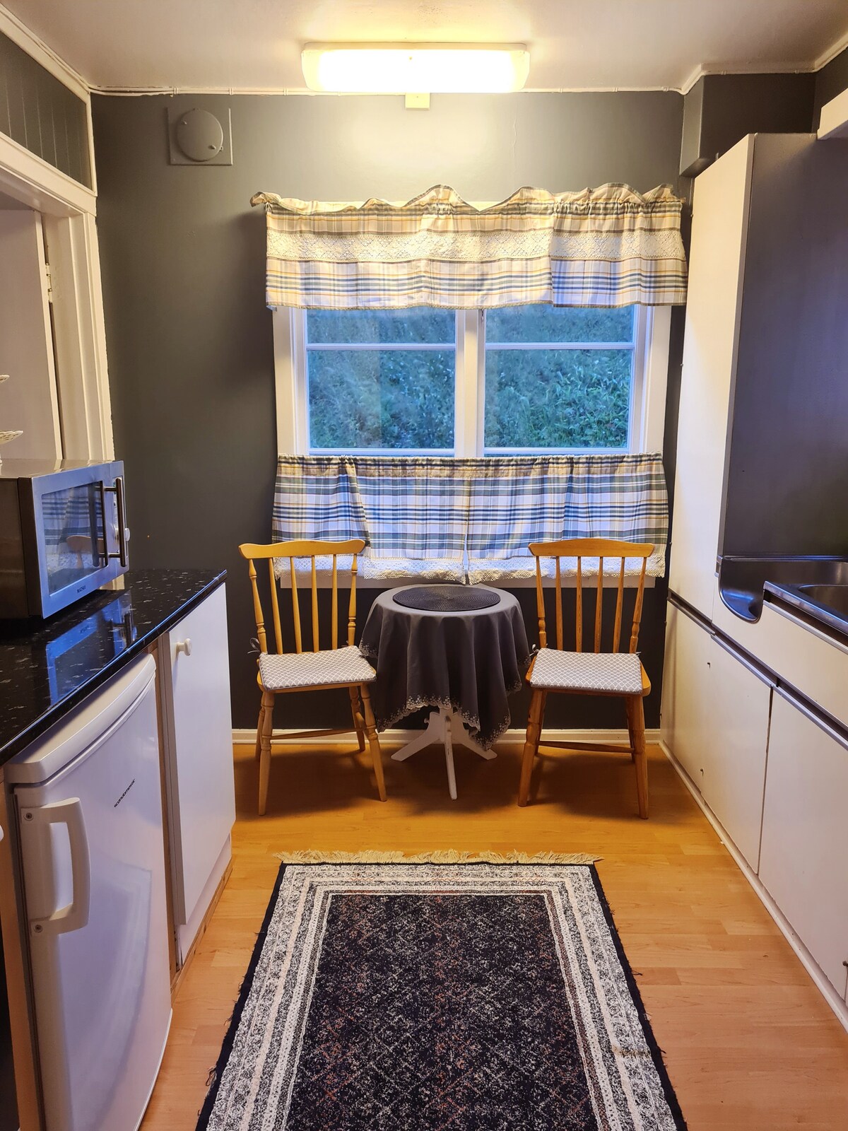 Relaxe com toda a família neste espaço tranquilo para uma estadia. Aqui tem acesso gratuito a uma natureza fantástica com oportunidades para caça, colheita de bagas, esqui e pesca. Há 8 camas na cabana e duas num anexo, por isso aqui duas famílias podem passar férias juntas. Há jogos para adultos e crianças. TV com antena parabólica e muitos canais de TV. Cozinha grande e bem equipada A cabana está localizada a cerca de 300 metros do terreno e, infelizmente, não está adaptada para pessoas com mobilidade reduzida. Sem água corrente.