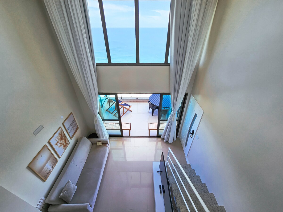 Vista Mar Panorâmica | Loft c/ Mezanino & Varanda