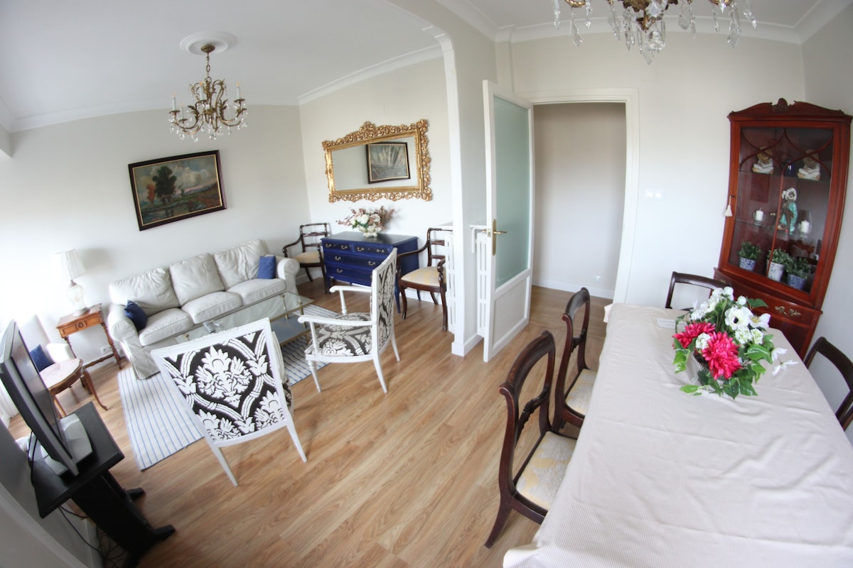 Apartamento central e todo o exterior ideal para quatro ou 7 adultos 2 quartos com roupeiros 2 camas de casal e outras 3 camas de 90. Sala de jantar na cozinha e outra sala de engomar, 2 varandas e um pátio interior Wi-Fi /TV/máquina de lavar roupa/máquina de lavar louça/micro-ondas/frigorífico /secador de cabelo e ferros de engomar.Toalhas e roupa de cama gratuitos.Uma curta distância a pé da melhor área comercial e a cinco minutos do centro da cidade , autocarro e estação ferroviária e a uma curta distância a pé da famosa Laurel Street.
