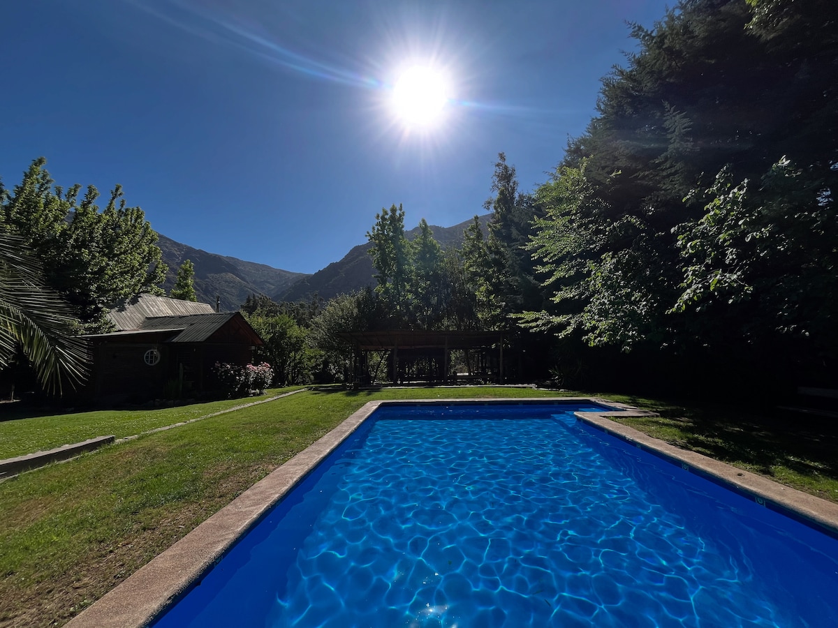 Linda cabana construída entre uma pequena floresta que dá tranquilidade e frescura para desfrutar de uma churrasqueira no seu terraço ou de um banho relaxante na lata com água quente. E para aqueles dias quentes pode refrescar-se na piscina. Também dentro do recinto pode desfrutar dos seus pontos de vista com vistas fascinantes sobre o vale e o pôr do sol e as montanhas nevadas. *Tinaja e piscina apenas para hóspedes. * Estacionamento gratuito *Tinaja não incluída no valor.