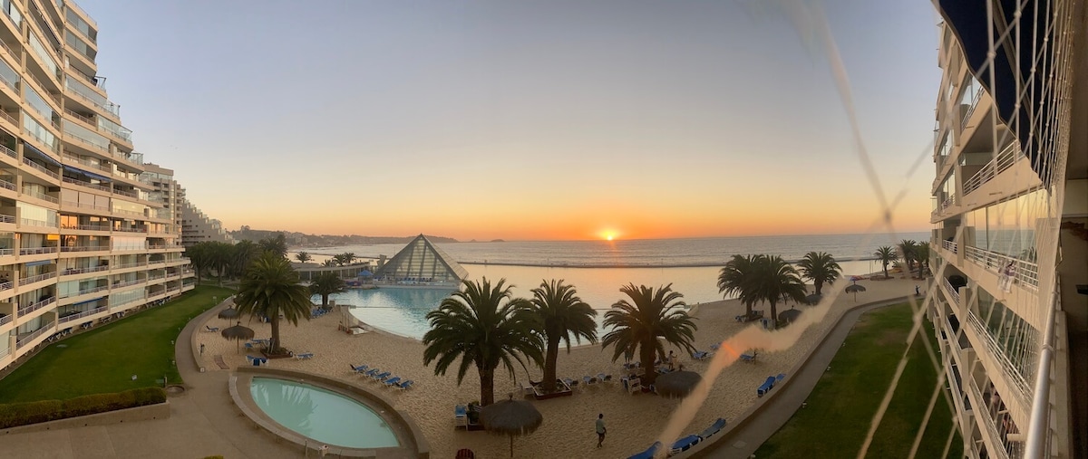 Amplo apartamento e amplo terraço com a melhor vista de San Alfonso del Mar, lar da maior piscina da América Latina. Perfeito para 8 pessoas, 4 quartos, 6 camas, 3 banheiros completos e dois estacionamentos privativos. Relaxe na varanda fechada, churrasqueira e desfrute de vistas panorâmicas para o mar. As áreas comuns contam com restaurante e cafeteria. O apartamento oferece pores do sol e experiências inigualáveis. Ideal para casais e famílias. Segurança privada.