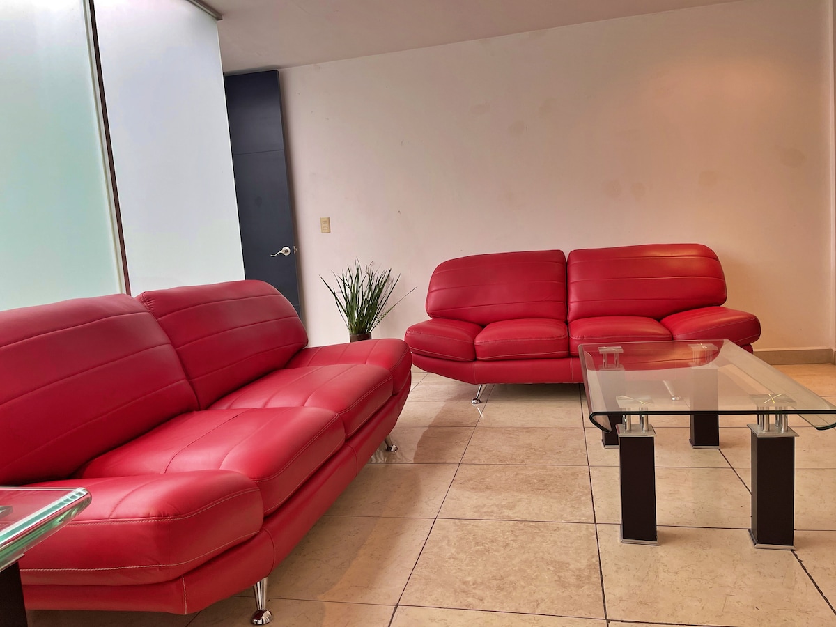 Aproveite o final da sua visita a Cholula Pueblo Mágico em uma estadia confortável e tranquila. Você encontrará um apartamento no térreo cercado por plantas. 2 quartos com cama de casal, cozinha, banheiro completo, sala de estar e jardim privado. Está localizado a 1 km do Centro Arqueológico de Cholula, a 0,5 km da UDLAP e a 3 minutos do anel viário. Também é adequado para usá-lo sob a modalidade de "trabalhar em casa" estando confortável e conectado.