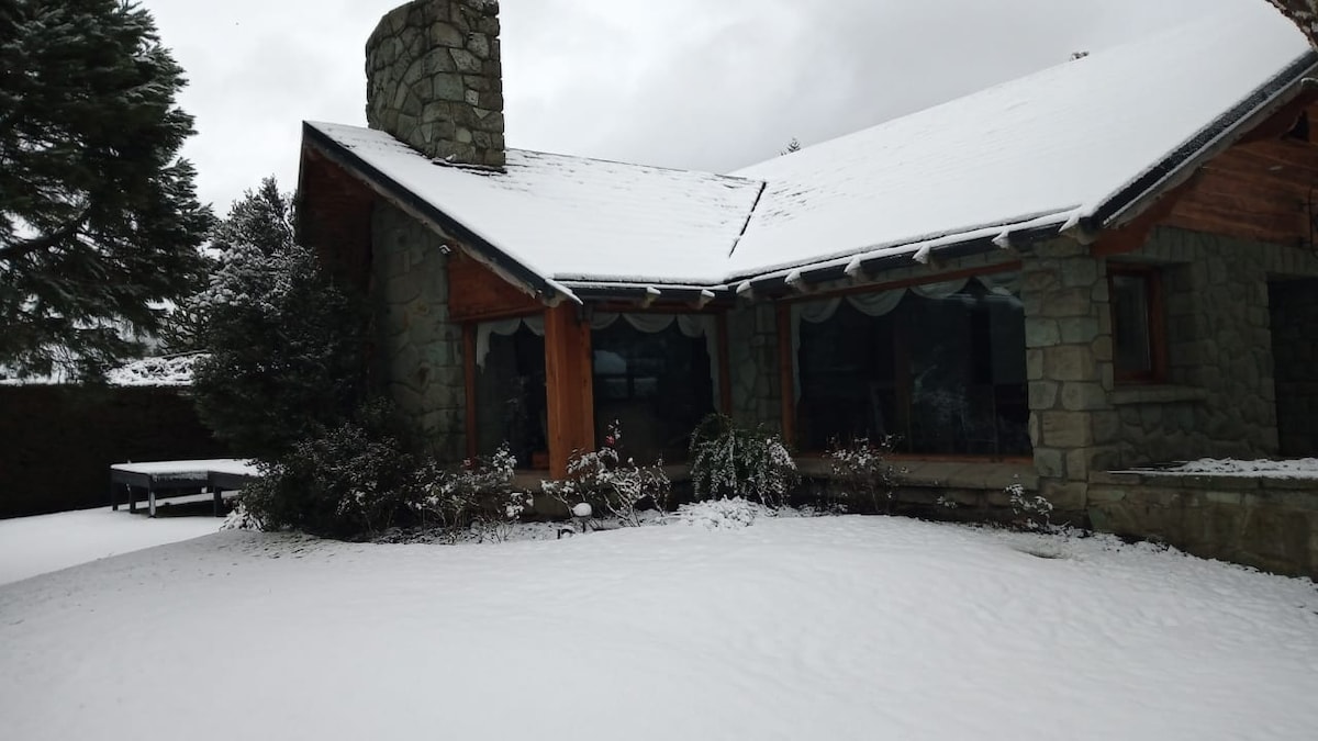 Esta bela casa está situada em um ambiente natural. A apenas 3 quarteirões do Lago Nahuel Huapi, com vista para o Cerro Otto, localizado entre as 2 rotas principais. Av. Bustillo e Av. Pioneiros. Vai recebê-lo no inverno com sua bela lareira e o silêncio da natureza. No verão, você será recebido cheio de flores, com um fogão central para seus assados ou para se aquecer nas noites frias. Perto de rotas de acesso a C° Otto, C° Catedral e C° Campanario. A poucos minutos do centro da cidade.