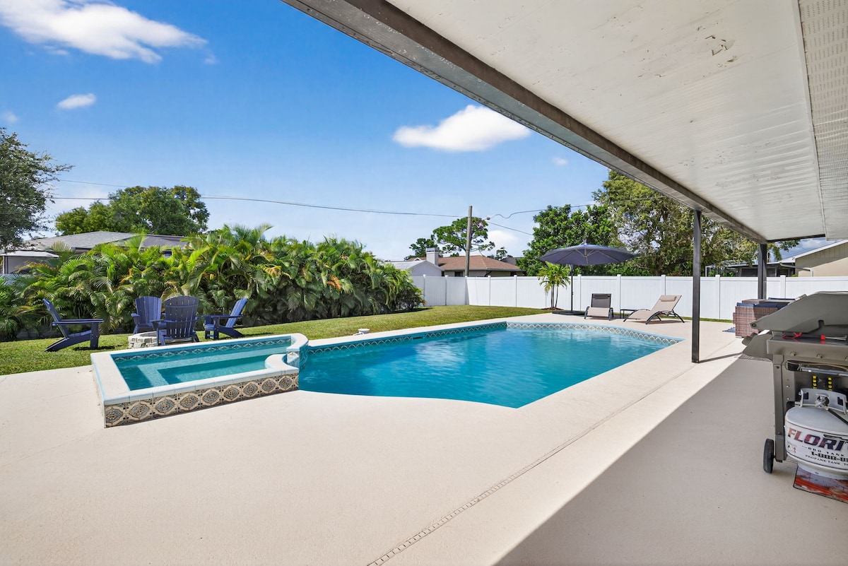 Oásis ensolarado na Flórida com piscina aquecida e banheira de hidromassagem