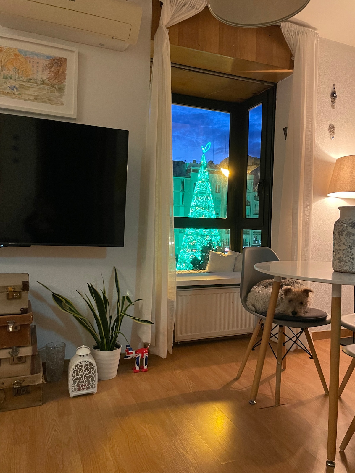 O apartamento “Vine” está localizado no centro de Madri, fora da Gran Via, em uma rua tranquila em um novo edifício com elevador. É inspirado na natureza, luminoso e moderno, tem Wi-Fi, está totalmente equipado e está muito perto de restaurantes, tapas, do metrô, lojas e galerias. Ideal para solteiros, casais ou casais com uma criança! Animais de estimação são bem-vindos!!! O apartamento está localizado em um novo edifício, com elevador! É moderno, com muito verde, temático ao seu nome, Vine. Uma enorme janela ao longo de todo o apartamento tem vista para um belo jardim privado. O apartamento é composto por um quarto com cama de casal, uma área de estar com um sofá-cama de solteiro, cozinha e banheiro. Tem Wi-Fi e está totalmente equipado, incluindo uma máquina de lavar roupa, TV, ar condicionado e cafeteira Nespresso - tudo pronto para o seu conforto e diversão! O apartamento é um apartamento de estúdio em espaço aberto - e é todo seu para desfrutar! Não há áreas no apartamento que você não possa usar ou acessar! Adoramos hospedar, mas também respeitamos a privacidade dos nossos hóspedes! Estamos aqui para ajudar você tanto quanto você gostaria! Localizado perto da Gran Via, no animado bairro de Malasana, com sua grande variedade de cafés, tapas e bares autênticos. As lojas enormes Zara, Primark e Mango estão a poucos minutos de distância. Os melhores locais de Madri, como o Palácio Real, a Puerta del Sol e os museus, estão a uma curta distância a pé A Estação Central de Metrô Gran Via fica a 2 minutos a pé do apartamento. De lá, você pode pegar o metrô para qualquer lugar que você quiser em Madri e também para todas as estações de trem que o levarão de Madri para o resto da Espanha. Se você vier de carro, um grande estacionamento está localizado no Barco 1, Madri, a apenas 1 minuto do apartamento. Há também uma estação de aluguel de bicicletas nas proximidades. Um kit de hospedagem de água, refrigerante, leite, café, chá e adoçantes estará esperando para recebê-lo :-)