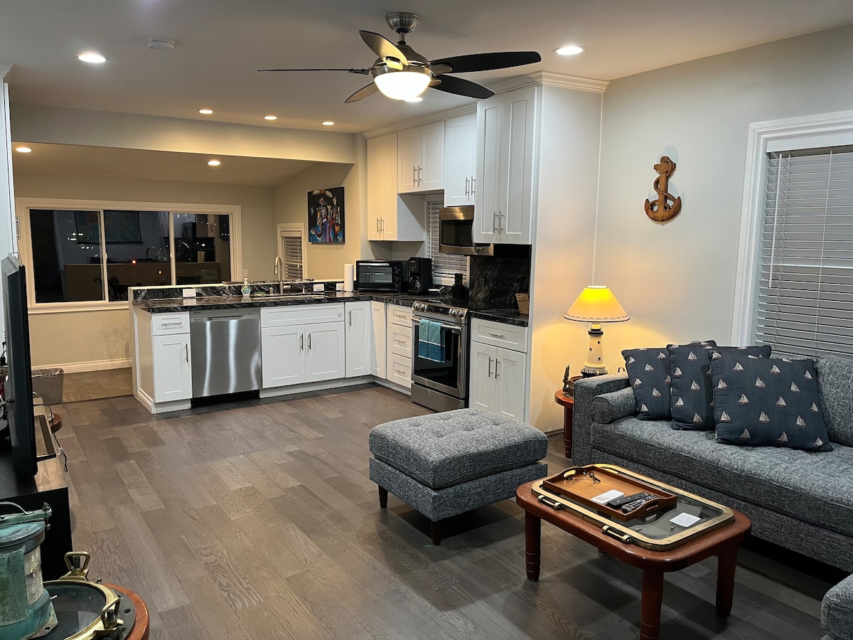 Apartamento de praia moderno de meados do século com 1 quarto e 1 banheiro