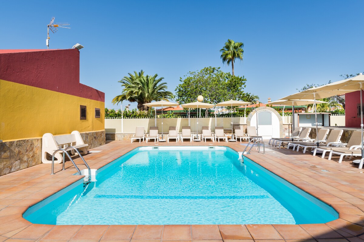 Adorável e calma casa independente, com jardim luminoso a poucos passos de uma das quatro piscinas de um complexo residencial extremamente tranquilo e seguro (Los Arcos) no centro de Playa del Ingles, Maspalomas. Totalmente renovada e recentemente decorada, esta casa é o lugar ideal para umas férias relaxantes ao sol do sul de Gran Canaria. A casa está localizada a poucos passos do Yumbo Centrum e a 10 minutos a pé da praia e das dunas de Maspalomas.