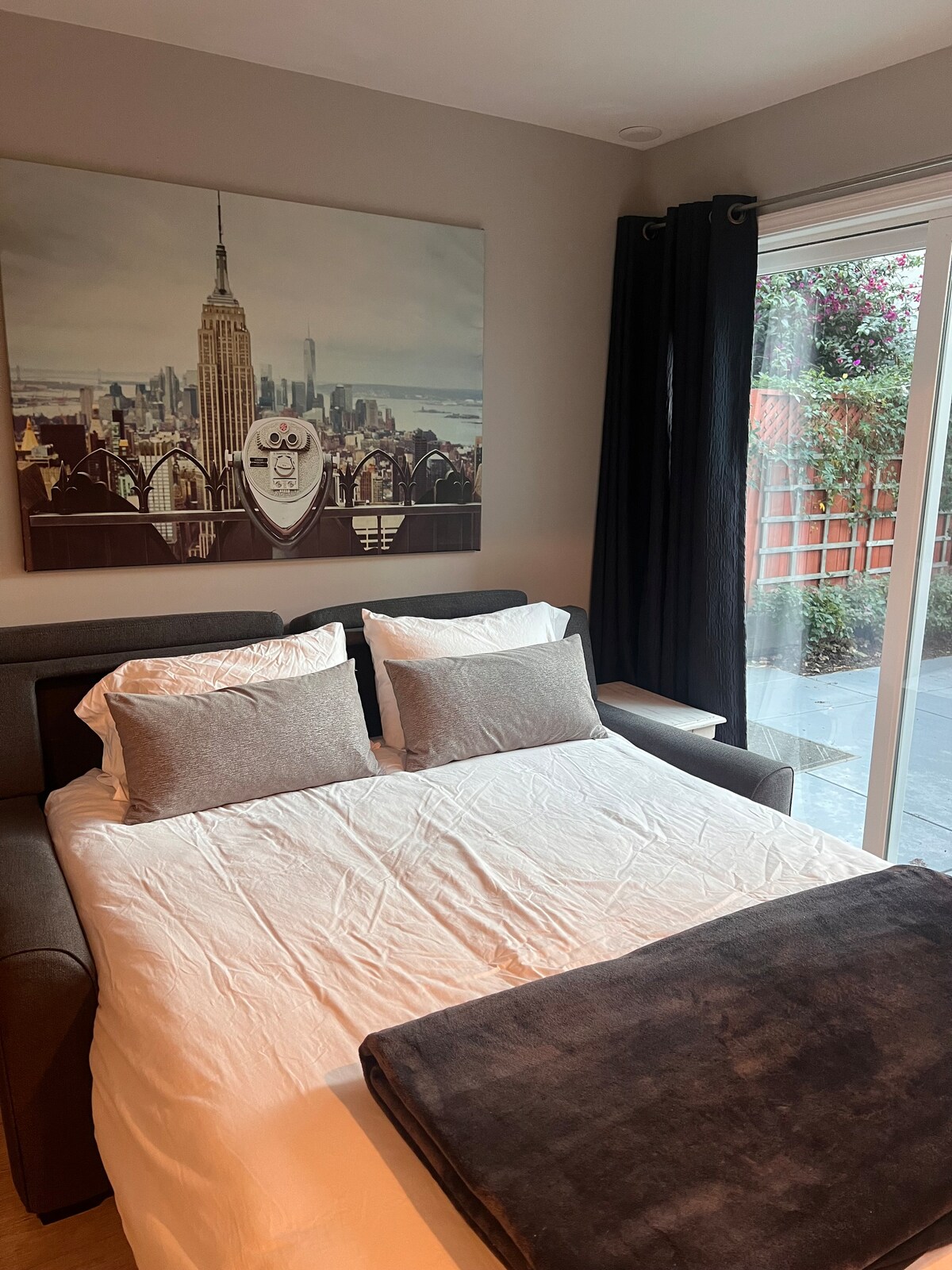 Luxury renovated studio. Top area. Designer furniture, bathroom & kitchen appliances. Private garden. Keetsa king size mattress and fine linens. Street is quiet and beautiful, but the neighborhood (Fillmore, Union, Chestnut, Polk St) is bustling w/ restaurants, cafes, bars & shops. SF's sights are moments away via public transport or Uber/Lyft. Walk score 95/100. We ask that you please have a look at our house rules/additional rules. Thank you!