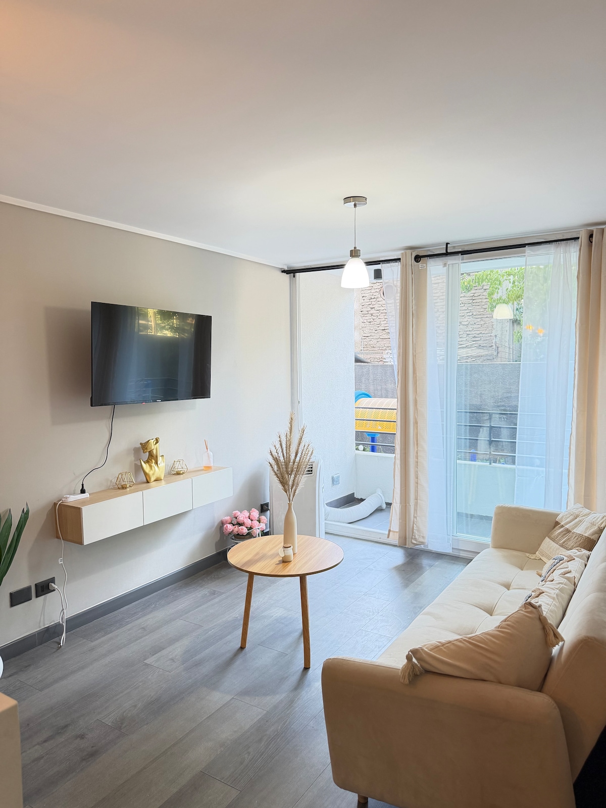 Desfrute deste apartamento moderno e acolhedor. Com uma varanda, perfeita para descansar ou trabalhar confortavelmente, com uma cozinha totalmente equipada, Wi-Fi e um design elegante que combina calor e estilo. Localizado a 4 minutos do Metro lo Ovalle com acesso rápido a autoestradas, cafés, supermercados, hospitais, ideal para casais, viajantes de negócios ou estadias de curta duração em Santiago. 🛋️ Sala de estar com um sofá confortável 🍳 Cozinha equipada com forno, micro-ondas e chaleira 🌞 Varanda com luz natural Wi-Fi 💻 de alta velocidade