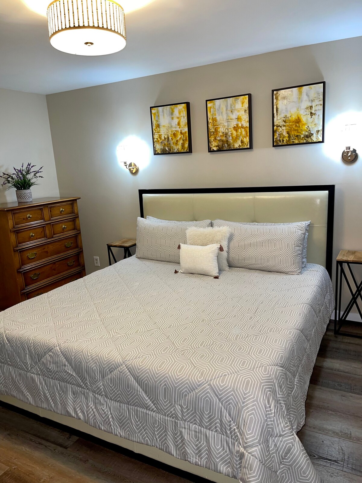 Unidade de três quartos no piso superior. Esta casa tem acesso ao segundo andar com uma entrada no segundo andar com uma cama queen e casa de banho. O terceiro andar tem mais dois quartos com casa de banho completa. Propriedade gerida pelo proprietário: isso significa que não está a trabalhar com uma enorme empresa de arrendamento de conglomerados, mas com pessoas que se importam. Desfrute de garrafas completas de champô, condicionador, sabonete para o corpo, chuveiros quentes com chuveiros que funcionam, uma casa limpa e bem abastecida por proprietários que adoram hospedar.