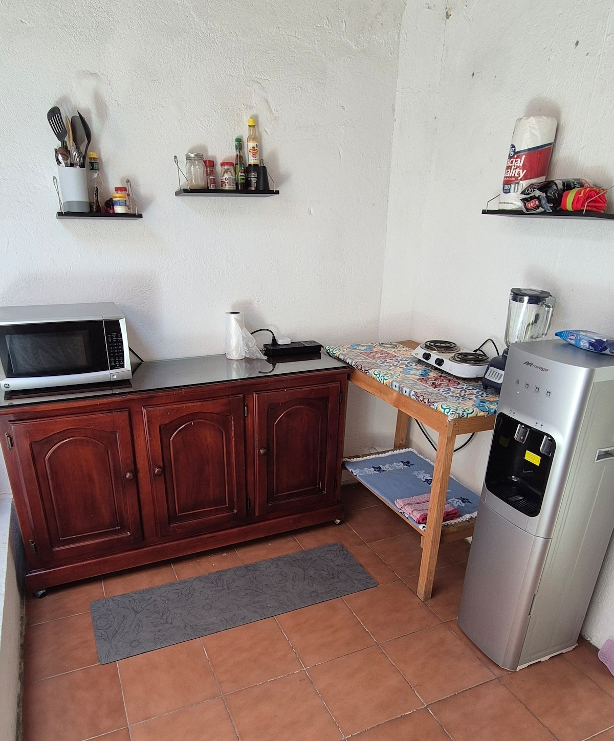 Habitación privada amplia, entrada independiente. baño exclusivo, En segunda planta, (subida por escalera e servicio independiente a la principal de la vivienda). No hay espacios compartidos mas que la entrada por la cochera. La habitación está equipada para una estancia práctica. estufa cafetera cama matrimonial mesa y sillas frigobar enfriador de aire microondas tarja utensilios basicos de cocina Smart TV wifi