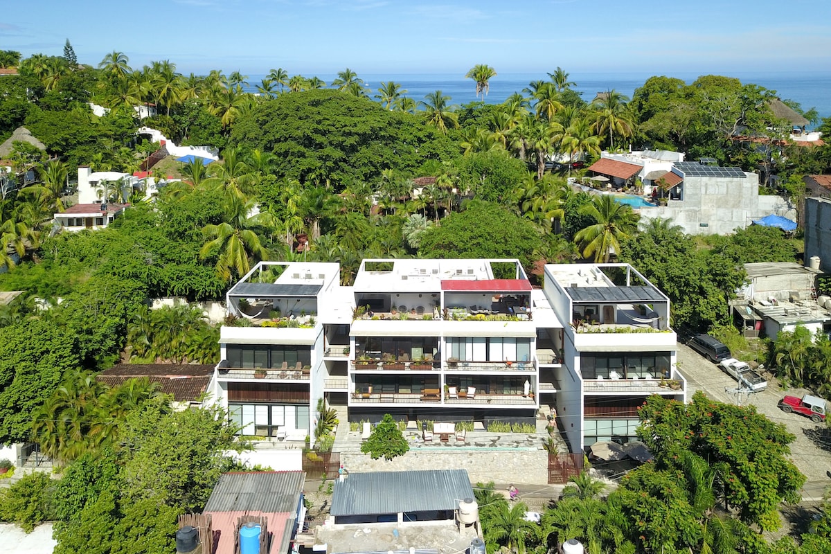 Wi-Fi de alta velocidade confiável para trabalhar remotamente, apartamento aconchegante no centro de Sayulita, a apenas 2 quarteirões da praia. 2 quartos e 2 sofás-cama, capacidade total de 6 pessoas. Área de jardim e sala ampla com pé direito alto, proporcionando um equilíbrio de luxo e conforto, para relaxamento e tranquilidade. Você pode desfrutar de cafeterias, bares e restaurantes para deliciar seu paladar a poucos passos de distância, inclui ar condicionado, acesso controlado automático, espaço de estacionamento, piscina lounge incrível.