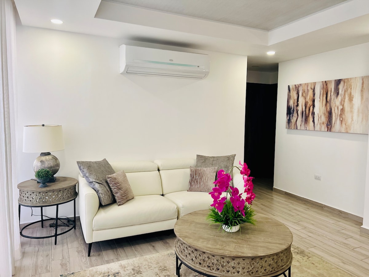 Vai adorar ficar neste lugar 😊 é único tem o seu próprio estilo, é automatizado, controla tudo, desde o seu conforto com a Alexa, ideal para casais ou executivos que procuram um lugar moderno para trabalhar e descansar a partir de casa numa cama king super confortável, pode ver o seu jogo de futebol na TV de 65 "com Netflix, Disney, Amazon Prime, perfeito para uma noite de cinema.🍿 Está localizado no 1º andar da Torre 2 ✋Por favor, leia os regulamentos antes de fazer a reserva.