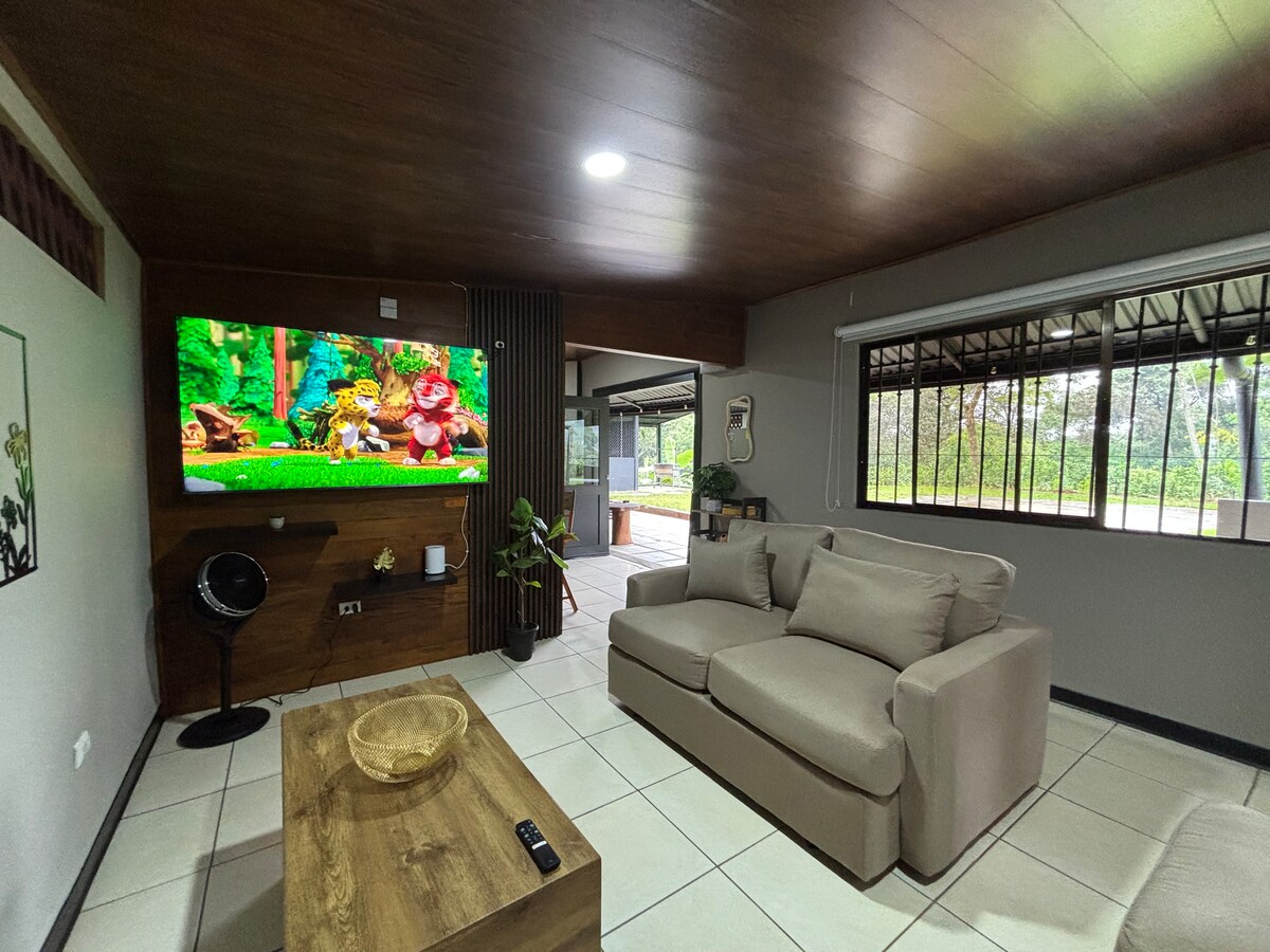 A Yellow Cat House é uma casa moderna, acolhedora e privada. Não é necessário um 4x4. 📍Localizado em Rivas com vistas espetaculares para a montanha. Perfeito para dois hóspedes, fica a 18 minutos do Parque Nacional Chirripó e perto da Reserva Cloudbridge. As comodidades incluem Internet rápida (200 Mbps), banheira de hidromassagem privada, estacionamento coberto com portão elétrico, cozinha totalmente equipada, ginásio privado e acesso com degraus. Desfrute de tranquilidade e proximidade ao centro da cidade e aos trilhos locais. ✨ A casa está localizada em frente à rua 242.
