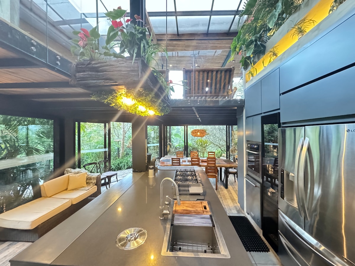 Moradia moderna em La Cristalina, perfeitamente localizada entre Peñol e Guatapé. Rodeado pela natureza com uma piscina alimentada por nascentes, 2 jacuzzis quentes, banheira de hidromassagem, terraço, lareira e lençóis elegantes. Desfrute de uma sala de TV de ecrã grande, 6 TVs, Wi-Fi, Netflix, pingue-pongue, badminton, prancha de remo e uma doca de barco privada. Cozinha de chef totalmente equipada com máquina de lavar louça, eletrodomésticos sofisticados, 5 quartos, garagem e todos os serviços essenciais - conforto e natureza num lugar perfeito
