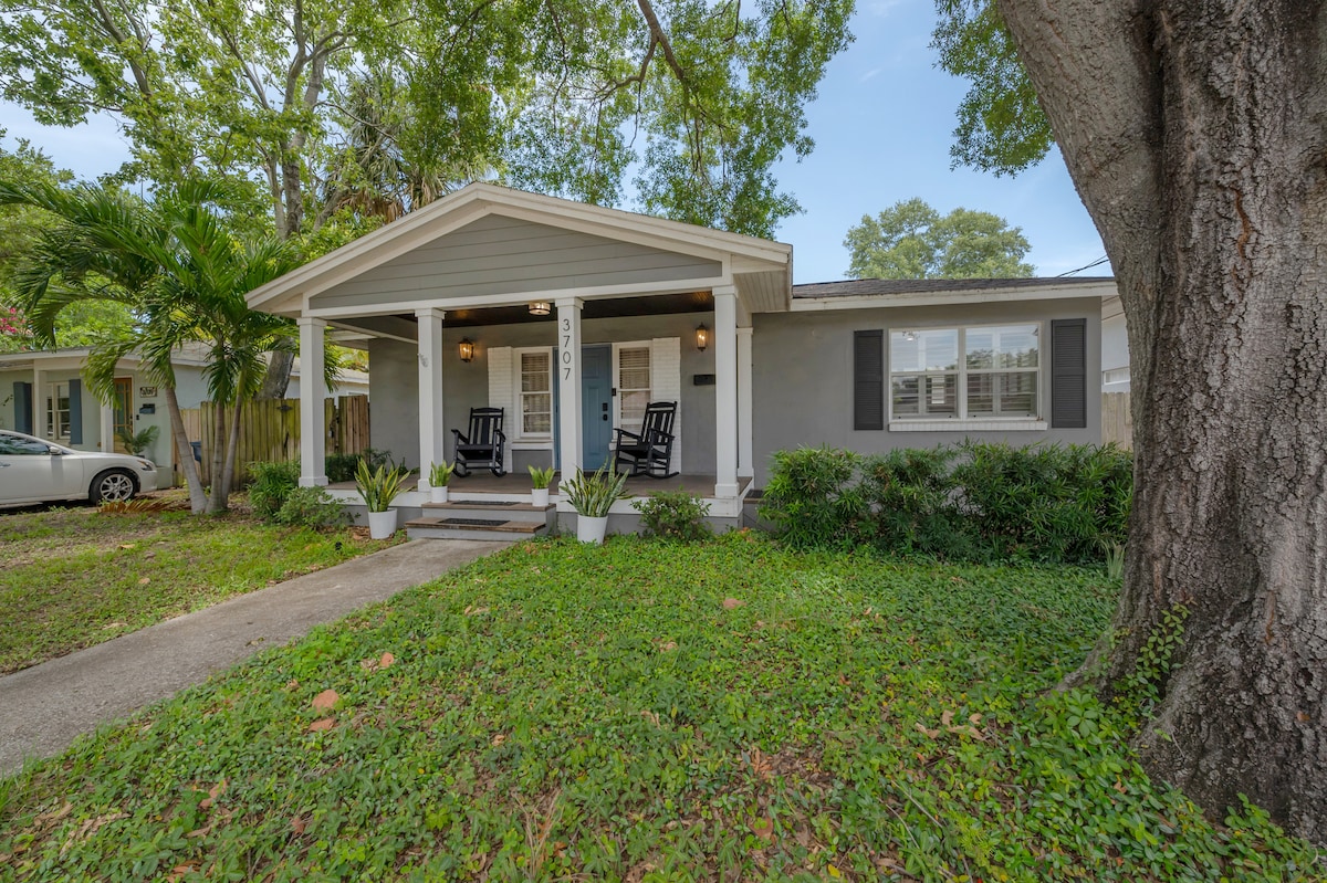 Este encantador bungalow de 4 camas e 3 casas de banho no sul de Tampa tem uma piscina privada com tela (com opção de aquecimento) e uma sauna elétrica de infravermelhos privada para duas pessoas ligada a uma casa principal e a uma casa de hóspedes, permitindo muito espaço para todos os hóspedes. A localização conveniente desta propriedade é de cerca de 10 minutos para todas as principais atrações, incluindo Raymond James Stadium, Downtown Tampa, Water Street, Amalie Arena, The Convention Center e Ybor City.