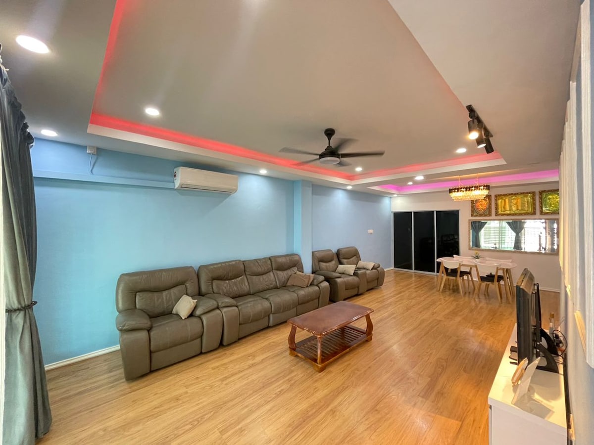Moradia geminada de 3 andares, Wi-Fi gratuito e segurança 24 horas por dia. Adequado para si e para a sua família (7 pax) Reserva mínima de 2 noites Quartos: Quarto 1 (Ar condicionado) - 1 cama queen com casa de banho privativa Quarto 2 (Aircon) - 1 Cama Queen, 1 Cama de Solteiro Quarto 3 (ar condicionado) - 2 camas de solteiro 2 Casas de banho com aquecedor de água e 1 sanita. Ferro e secador de cabelo disponíveis. Sala de estar com televisão (MyTV Channel) e área de refeições. Cozinha (fogão a gás, chaleira, panela e frigorífico). Cozinha leve. Máquina de lavar. Vaga de estacionamento no local próprio (2 carros)