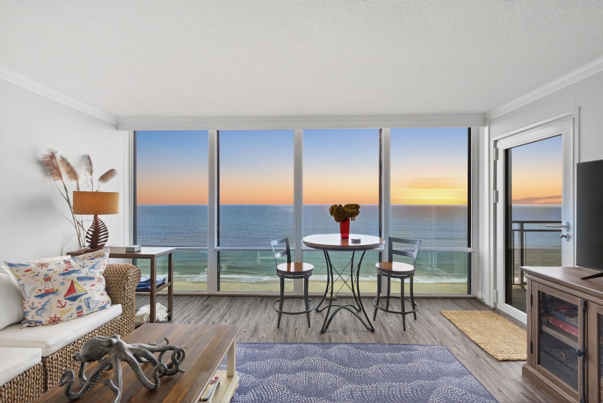 Fantastic condo on the beach. Floor to ceiling windows in living-room, bedrooms. Watching waves, sunrise, dolphins. Enjoy the ocean, boardwalk, beach gym, playground right at downstairs. Extra-large end-unit with fully equipped kitchen, saves you $$$ on meals. One free parking. Walking distance to restaurants, bars, stores, beach concerts, activities, art shows, performance. New 65” QLED TV, new sofa and dining set. Ask for extended stay discount! Up to 45% off Winter Special Deals. Book now!