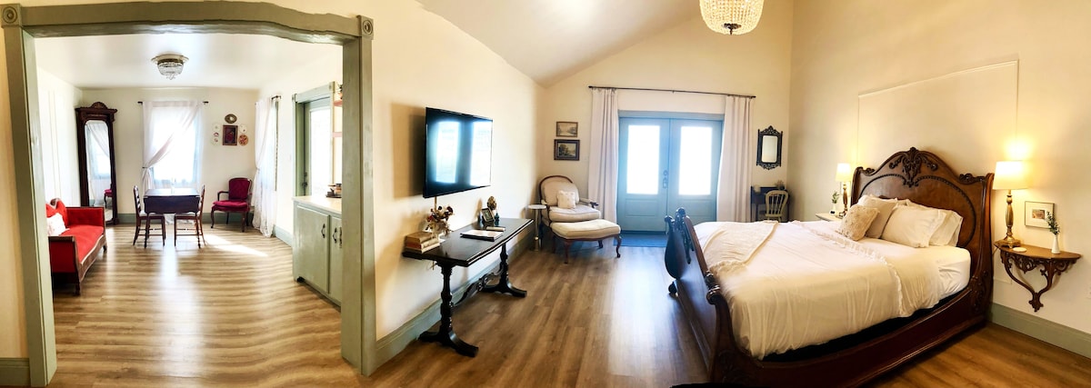 A Heritage House é uma pousada vitoriana da viragem do século, café, bar de fim de semana e local de eventos no coração da pequena aldeia de Corrales. O edifício Carriage House foi cuidadosamente restaurado em duas suítes da pousada. Este anúncio é para o nosso maior e mais sofisticado quarto, uma espaçosa suite de 600 pés quadrados. Este espaço único combina elegância vitoriana com confortos modernos luxuosos.