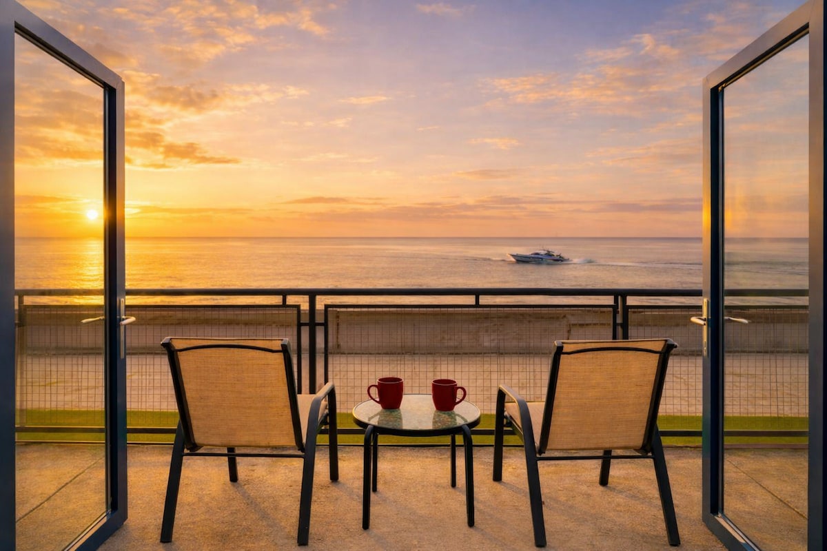 Apartamento de 2 quartos com pátio à beira-mar
