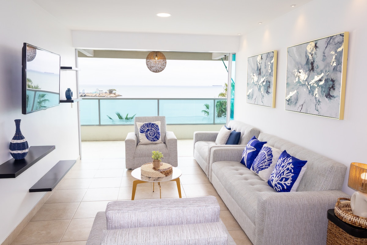 Apartamento de 4 quartos em frente ao mar e ao lado do Iate Clube de Puerto Lucia. Relaxe neste refúgio único e tranquilo. Excelente localização, perto de tudo, supermercado, praia e shopping. Segurança 24 horas por dia, 7 dias por semana, o apartamento está localizado em um complexo que possui piscina, jacuzzi, praia privada, academia, lavanderia e sala de jogos. Inclui 2 vagas de estacionamento cobertas dentro do condomínio