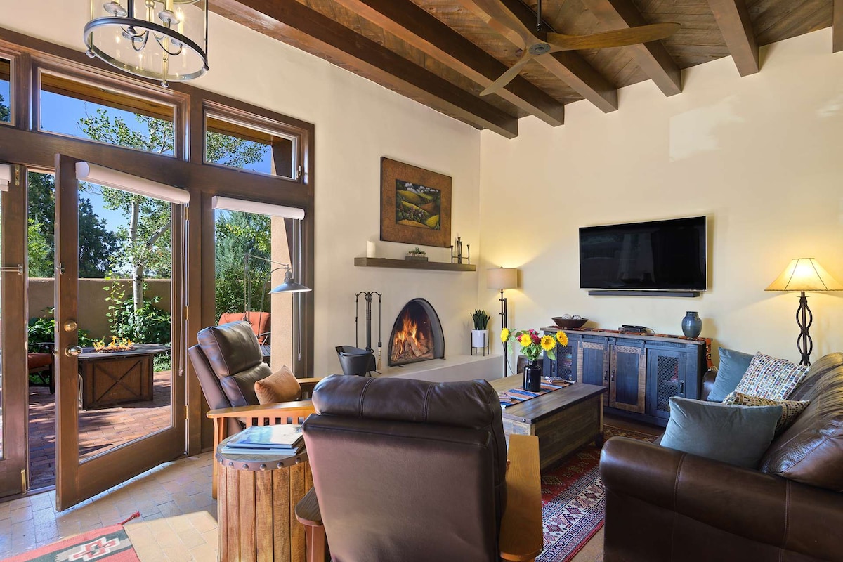 Canyon Road Chic: Adobe 1870 acolhedor com lareira