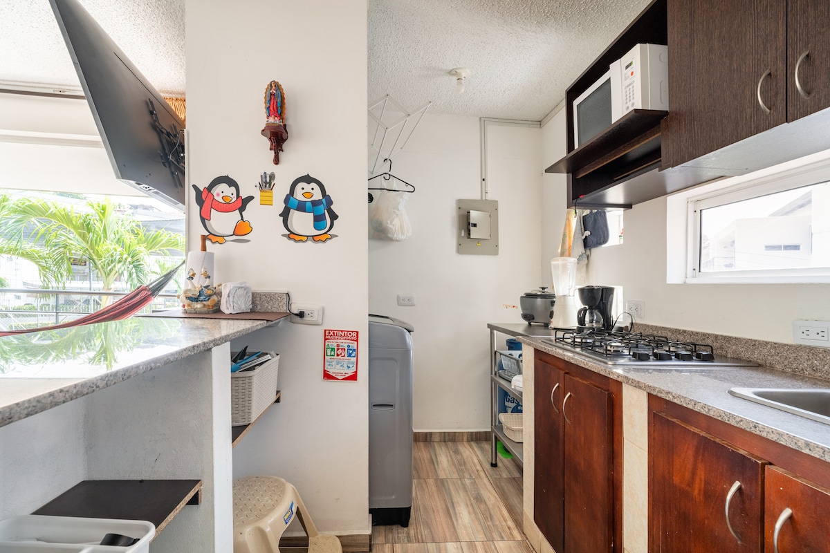 Sua família estará perto de tudo quando você ficar neste alojamento central a 5 quarteirões do parque principal, onde você pode desfrutar de uma caminhada para visitar os lugares do centro histórico da cidade ou simplesmente descansar dentro da unidade residencial, fazendo uso das áreas comuns e do apartamento.