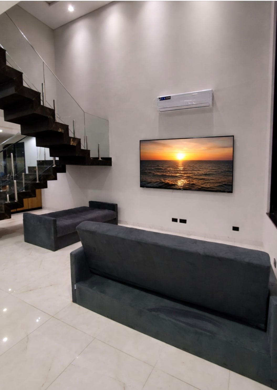 Sobrado recém reformado e totalmente mobiliado, oferece comodidades como: - Wi-fi de 1 Giga - Ar condicionado nos quartos, cozinha e sala - Churrasqueira e utensílios - Smart Tv de 65" - Geladeira - Cozinha com utensílios - Micro-ondas, cooktop, cafeteira e liquidificador - 01 Secador de cabelo - Ferro de passar - Mesa de passar - Máquinas de lavar louça e roupas. 2 camas Queen, 3 de solteiro, 1 Sofá-cama com cobre-leitos, toalhas, lençóis e fronhas.