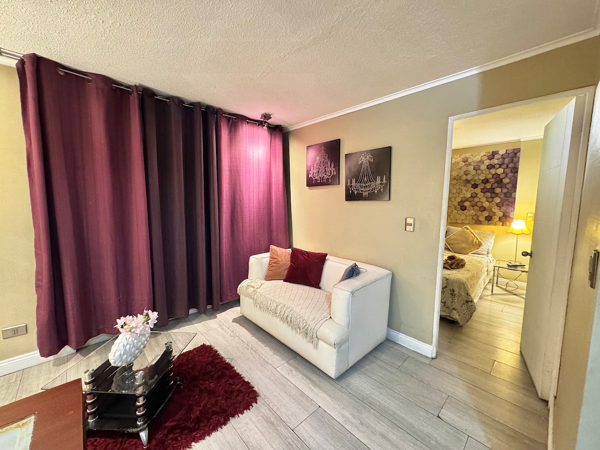 Desconecte-se de suas preocupações neste espaço sereno. Muito bem localizado no centro de Santiago, com concierge 24 horas, controle de acesso, perto de linhas de metrô (1, 3 e 5), edifícios governamentais e atrações turísticas. Adequado para trabalhar com Wi-Fi de alta velocidade. Relaxe em um ambiente agradável, com TV a cabo, ar condicionado e todas as comodidades de uma casa. Full Electric.