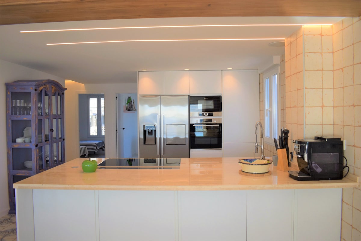 Newly renovated apartment overlooking Mediterranean , with spectacular views and everything you need to enjoy your vacation. Beautiful Levante beach is right across the road. Place has 3 bedrooms and 2 full bathrooms. Fully air conditioned and for the colder month, heated. 3rd bedroom has a desk and could be used as a home office for remote work. Please note that this is a NON SMOKING apartment. There are multiple restaurants and several grocery stores within short walking distance.