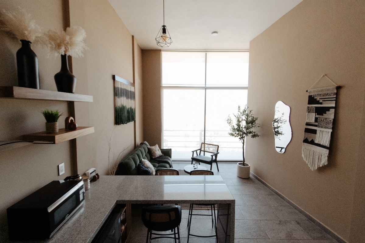 Desfrute de um loft de design industrial contemporâneo na área do hotel San Javier, a apenas 10 minutos do Centro Histórico e perto de Valenciana. A 5 minutos a pé do Parque El Orito. Tem uma janela grande com vista para a cidade e para a reserva ecológica. É um espaço moderno, tranquilo e acolhedor, com excelentes áreas comuns: uma piscina de hidromassagem e um terraço com vista. Perfeito para quem procura conforto, estilo e uma experiência especial em Guanajuato.