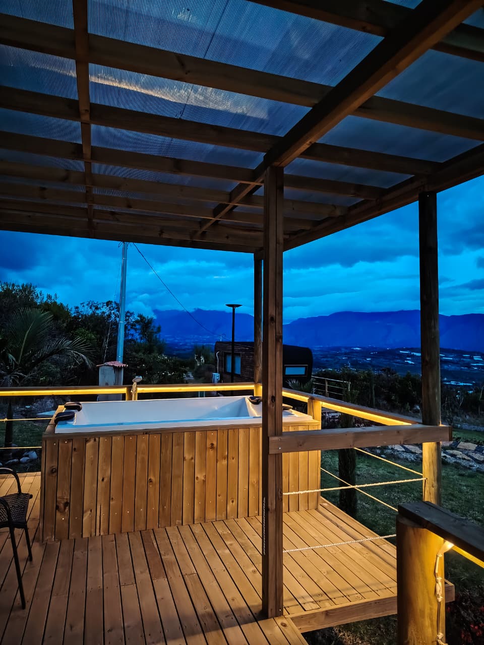Bienvenidos a este mágico y acogedor refugio rodeado de hermosos árboles y cascadas, aquí te acompañarán el canto de los pájaros y la plenitud de la vida de montaña. Ideal para amantes de la naturaleza que buscan un contacto íntimo con ella y desconectarse de la agitada vida de la ciudad. Podrás emprender caminatas en el bosque o descansar en la terraza contemplando impresionantes paisajes boyacenses. Contarás con todos los servicios de un glamp de lujo a escasos minutos de la civilización.