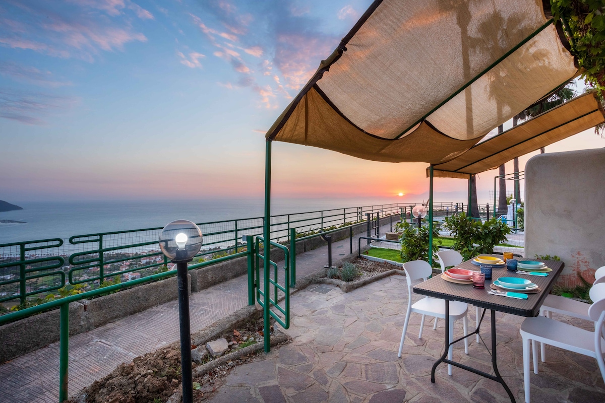 Apartamento de dois quartos com vista para o Golfo de Salerno e Capri, varanda e jardim, lugar de estacionamento reservado; o lugar ideal para viver com tranquilidade e admirar o pôr do sol incrível, a beleza de Cilento. A vista espetacular tornará a sua estadia inesquecível, as comodidades da casa, lençóis, cozinha completa, sala de estar exterior proporcionarão conforto. Possibilidade de utilização da piscina, do bar e dos serviços de restaurante da residência adjacente (serviços não incluídos no custo). Distância do mar: 1,3 km