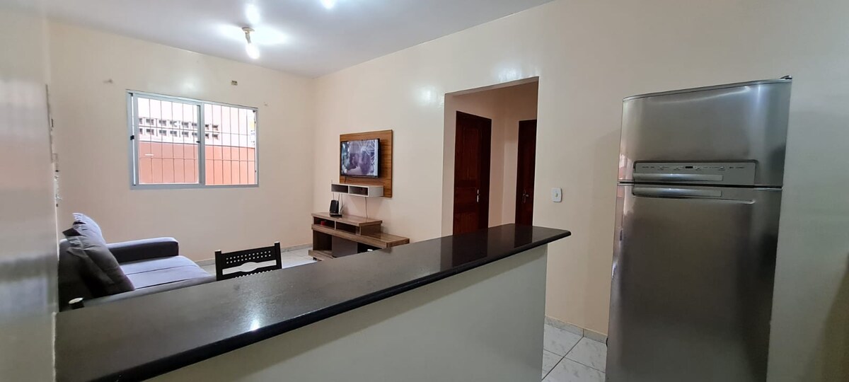 Apartamento para curtas e médias estadias, com garagem para 1 veículo, 2 quartos mobiliados, cozinha completa e sala de estar com área de serviço. um dos quartos possui uma cama tipo Queen, para casal. o outro quarto possui cama de solteiro com uma cama auxiliar, atendendo até 4 pessoas em uma mesma estadia.