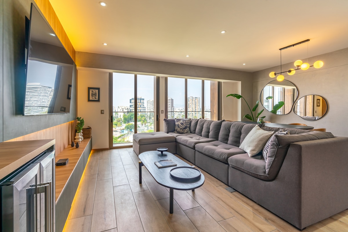 Luxuoso Airbnb com vistas deslumbrantes para o mar, combinando elegância moderna e conforto máximo. A um quarteirão da NOVA “Puente de la Paz”. Relaxe num espaço chique e acolhedor com ar condicionado de última geração, Wi-Fi de fibra óptica ultrarrápido para trabalho remoto e eletrodomésticos premium. Casa de banho TOTO. A uma curta distância do Maido, o restaurante n.º 1 do mundo (2025) e do Central (2023), além de restaurantes de primeira linha, cafés artesanais, museus e do centro comercial Larcomar.