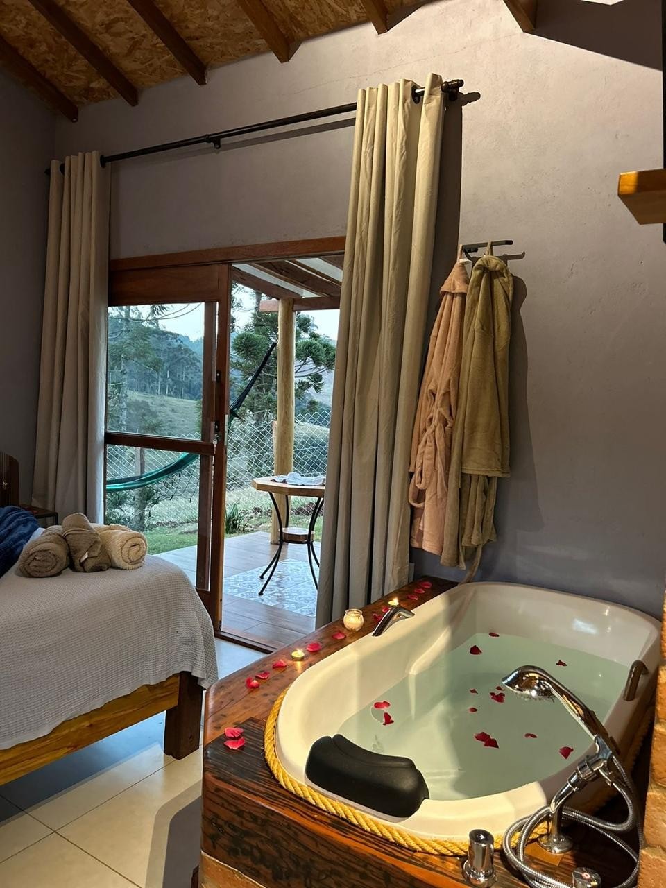 Descubra um refúgio onde o conforto encontra a natureza. Nosso chalé, cercado pelo verde e pelo silêncio da serra, é o cenário ideal para casais que valorizam experiências românticas e memoráveis. Relaxe na banheira de hidromassagem, aqueça-se junto à lareira nas noites frias e aproveite a piscina nos dias ensolarados. Cada detalhe foi cuidadosamente pensado para transformar sua estadia em algo único e inesquecível.
