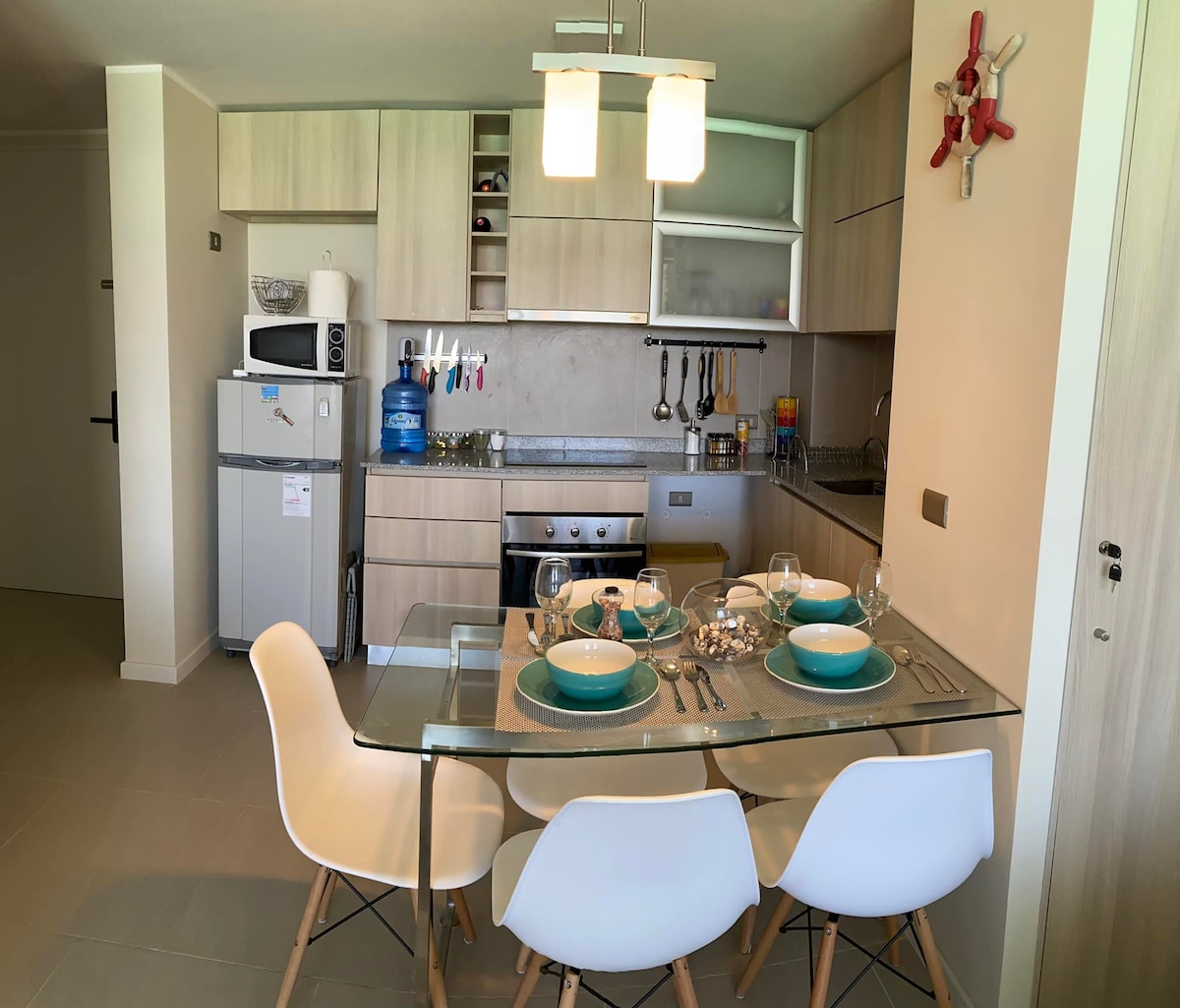 Apartamento confortável com saída para o setor costeiro, muito confortável e com vista direta para o mar, pôr do sol. Tudo o que você procura para descansar na região V. Terraço requintado com fechamento panorâmico e uma grande churrasqueira que permite desfrutá-lo durante todo o ano. Apartamento bem equipado, conta com smart TV 50” com Netflix, Disney+, Prime video, HBO Max, YouTube, entre outros. Tem muitos jogos de tabuleiro como o fabuloso grande Santiago e muitos mais, também tem conjunto de praia.
