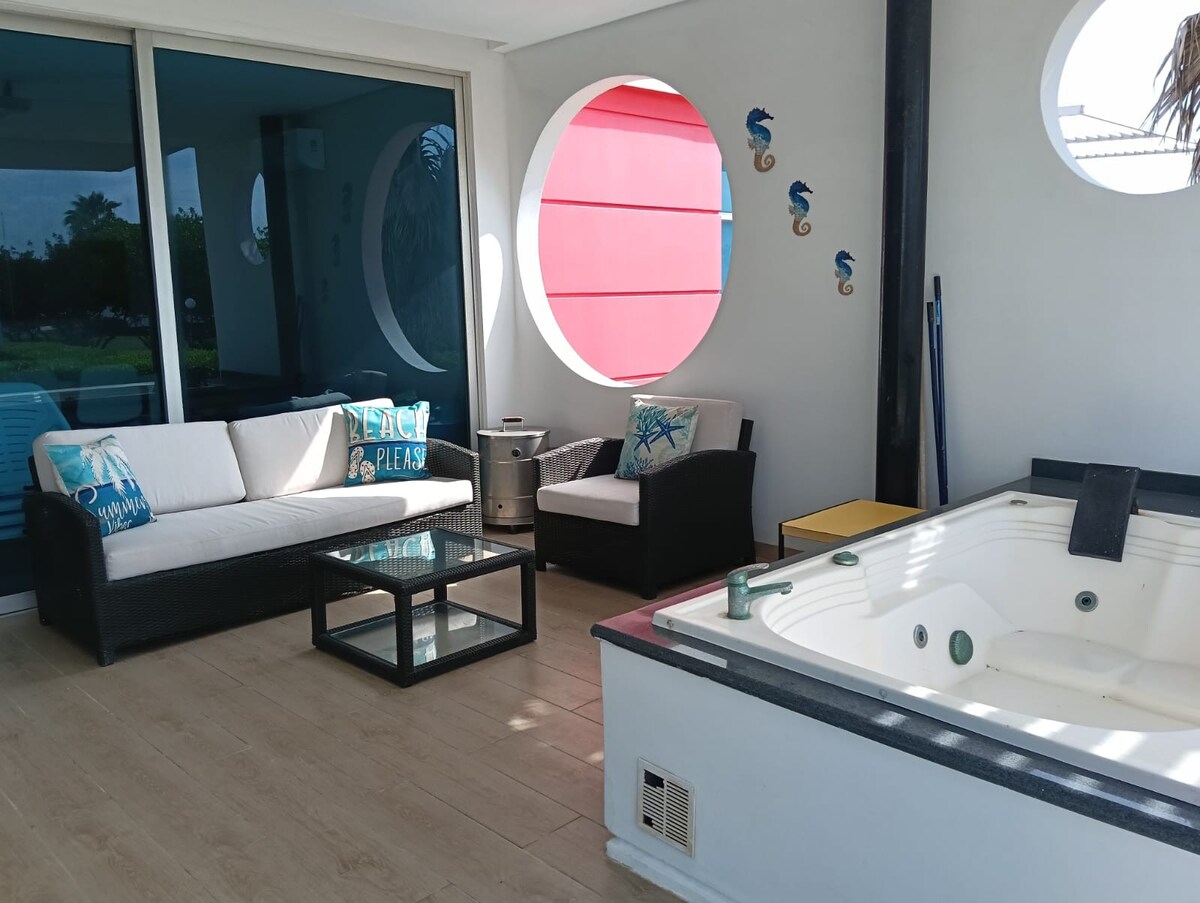 Esta encantadora casa de praia está localizada a apenas 20 minutos de Barranquilla e a 45 minutos de Cartagena, a apenas 5 minutos a pé da praia de Santa Veronica. Possui um layout espaçoso perfeito para criar memórias duradouras com a família e os amigos. Saia para descobrir uma grande piscina cintilante para relaxar e brincar. A cozinha ao ar livre/área de churrasco oferece um espaço agradável para aventuras culinárias, enquanto a suave brisa do mar sussurra promessas de tranquilidade.